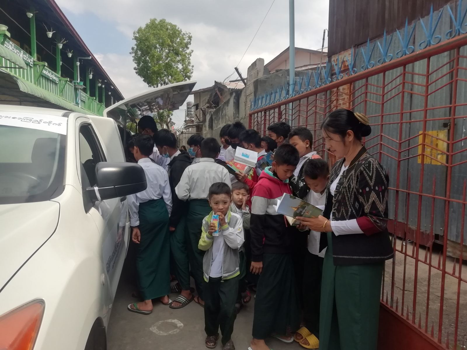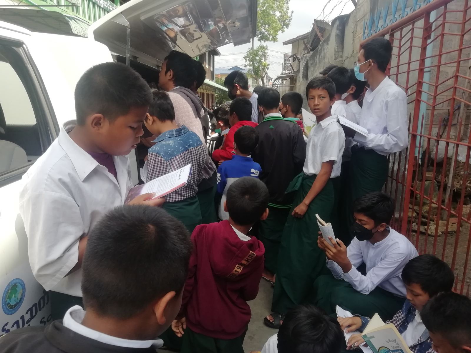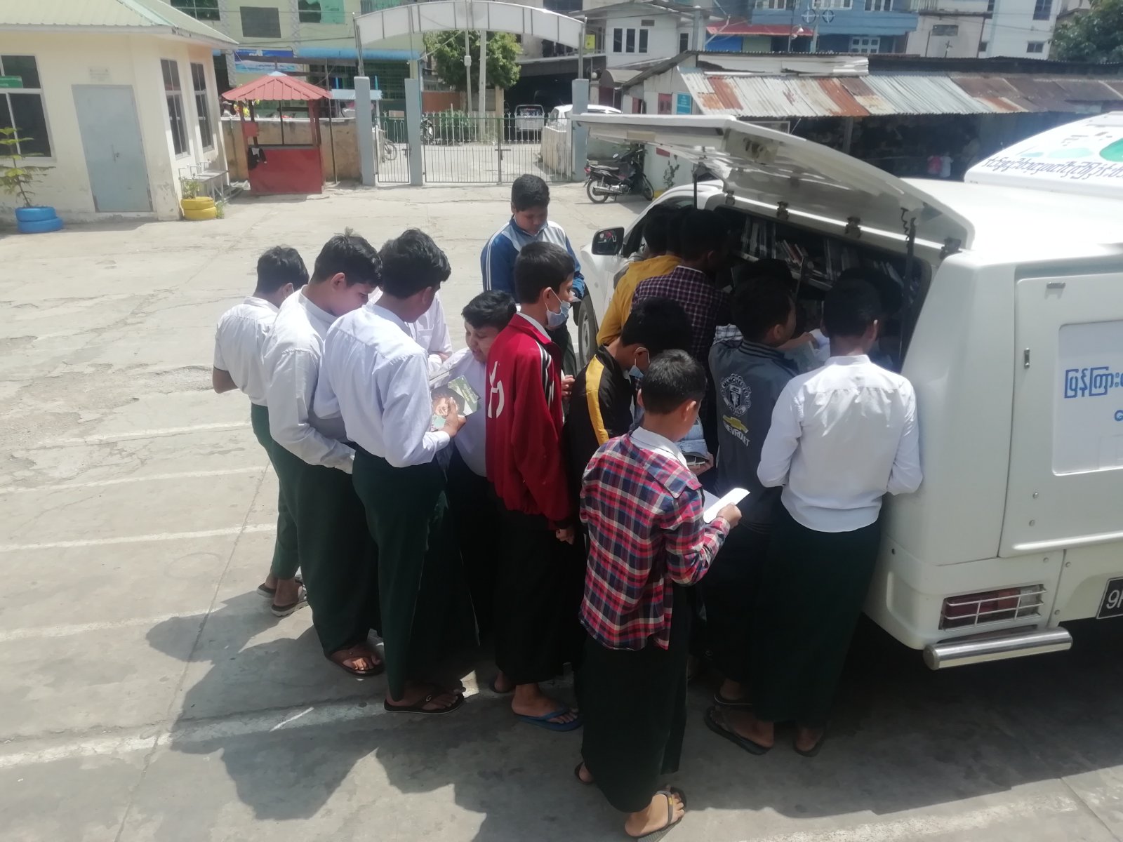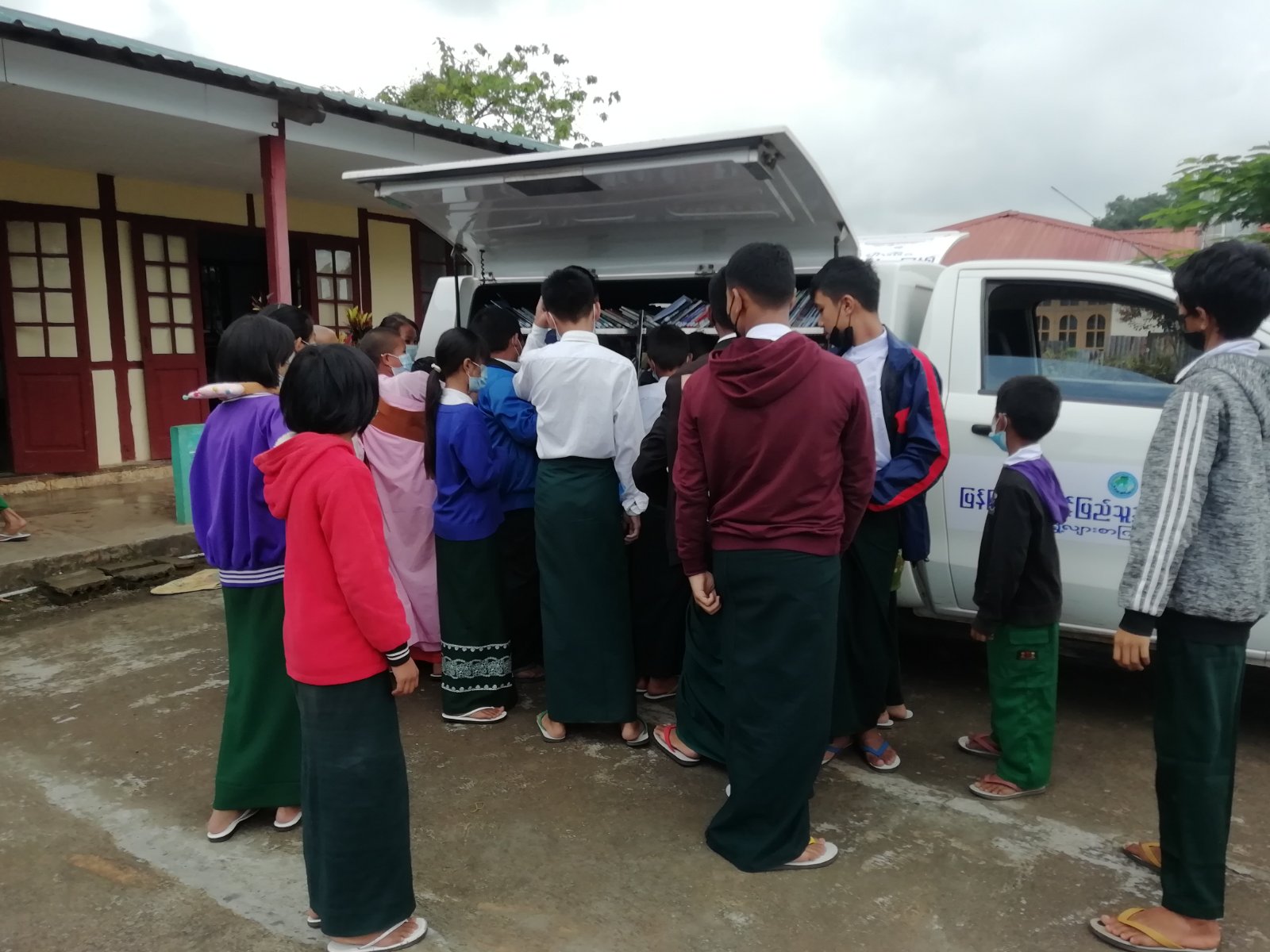 တောင်ကြီးမြို့၌ ရွေ့လျားစာကြည့်တိုက် မော်တော်ယာဉ်ဖြင့် အခြေခံပညာကျောင်းများသို့သွားရောက်၍ စာအုပ်များ ငှားရမ်းပေးလျက်ရှိ