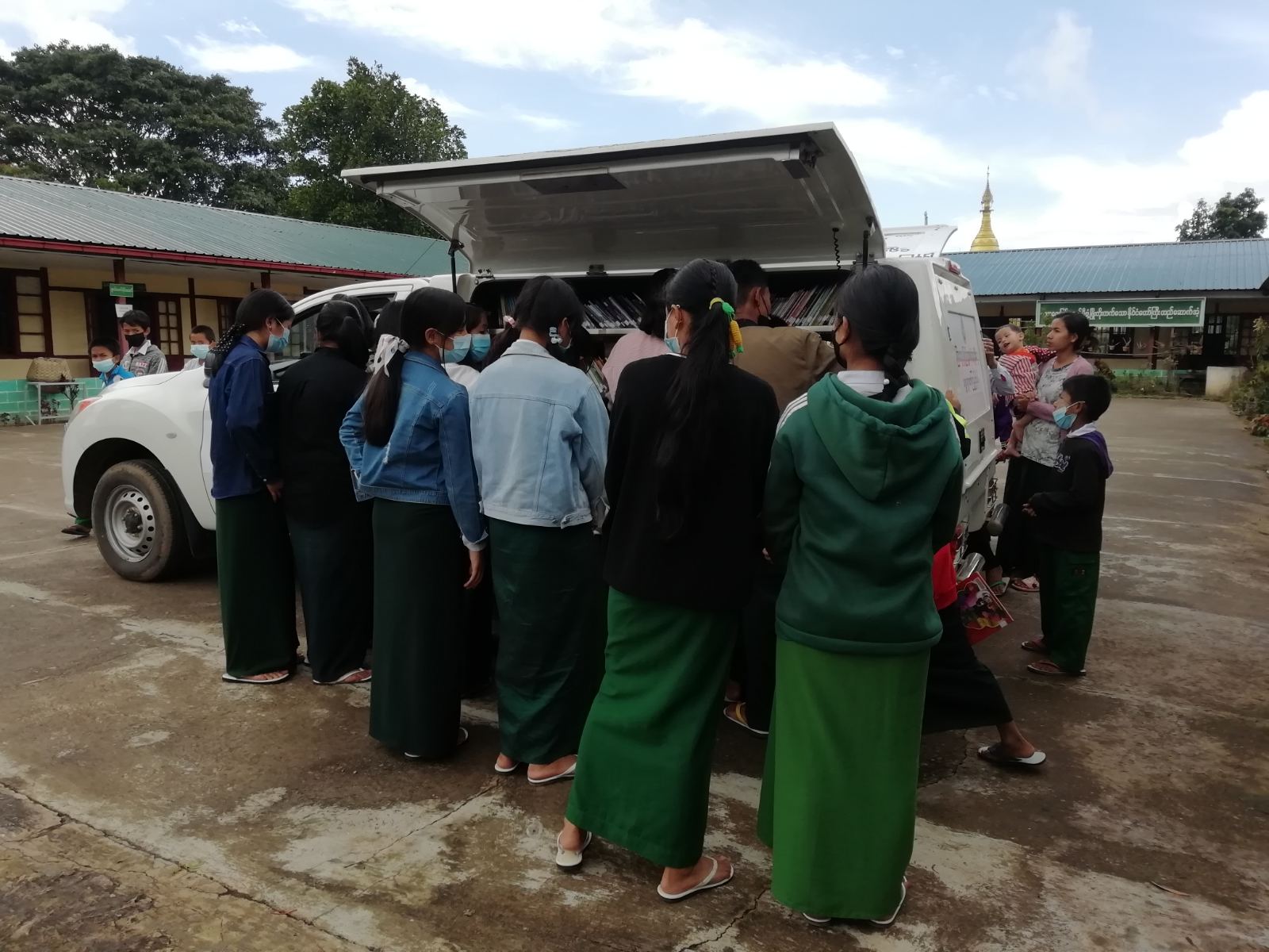 ရှမ်းပြည်နယ်(တောင်ပိုင်း)၊ တောင်ကြီးခရိုင် ပြန်ကြားရေးနှင့်ပြည်သူ့ဆက်ဆံရေးဦးစီးဌာန အနေဖြင့် ကျောင်းသား၊ ကျောင်းသူများ စာပေဖတ်ရှု လေ့လာတတ်သည့်အလေ့အကျင့်ကောင်းများရရှိစေရန်၊ အသိပညာပေး သုတ၊ ရသစာပေများနှင့် အဆက်မပြတ် ထိတွေ့မှု ရှိစေရန် ရည်ရွယ်၍ တောင်ကြီး မြို့နယ်အတွင်းရှိ အခြေခံပညာကျောင်းများသို့ ရွေ့လျားစာကြည့်တိုက် မော်တော်ယာဥ်ဖြင့် ယနေ့မွန်းလွဲ ၁ နာရီခွဲက စာအုပ်များ သွားရောက် ငှားရမ်းပေးလျက်ရှိသည်။