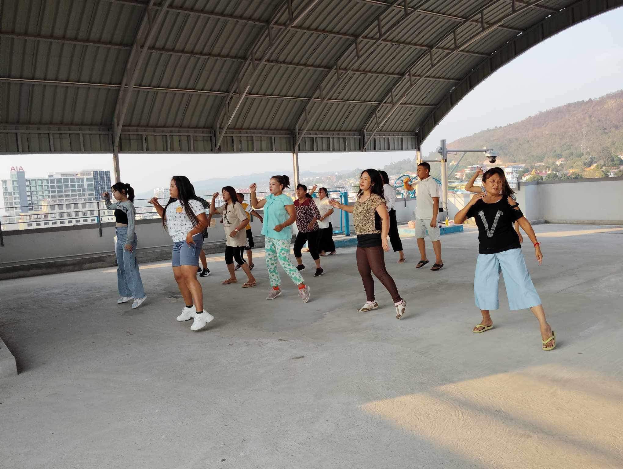 လူထုအခြေပြုဗဟိုဌာန (Community Centre Taunggyi)ရှိ ဟင်းလင်းပြင်လေ့ကျင့်ရေးအားကစားခန်းမတွင် Zumba Dances သင်တန်းသူများ၏ လှုပ်ရှားမှုပုံရိပ်များ။