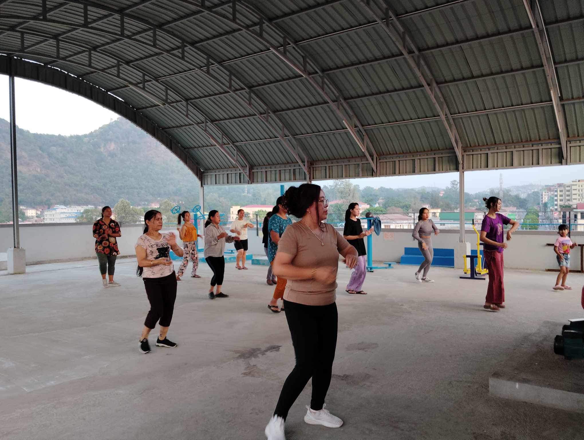 လူထုအခြေပြုဗဟိုဌာန (Community Centre Taunggyi)ရှိ ဟင်းလင်းပြင်လေ့ကျင့်ရေးအားကစားခန်းမတွင် Zumba Dances သင်တန်းသူများ၏ လှုပ်ရှားမှုပုံရိပ်များ