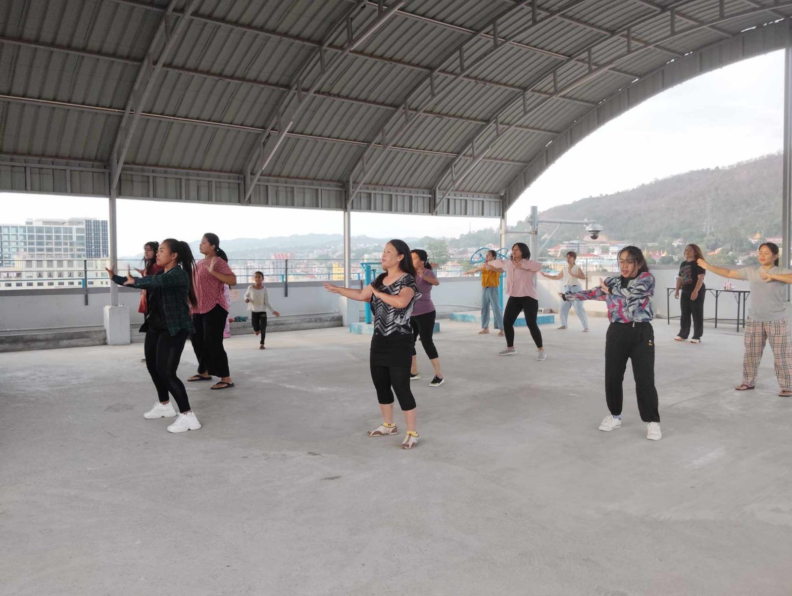 လူထုအခြေပြုဗဟိုဌာန (Community Centre Taunggyi)ရှိ ဟင်းလင်းပြင်လေ့ကျင့်ရေးအားကစားခန်းမတွင် Zumba Dances သင်တန်းသူများ၏ လှုပ်ရှားမှုပုံရိပ်များ။