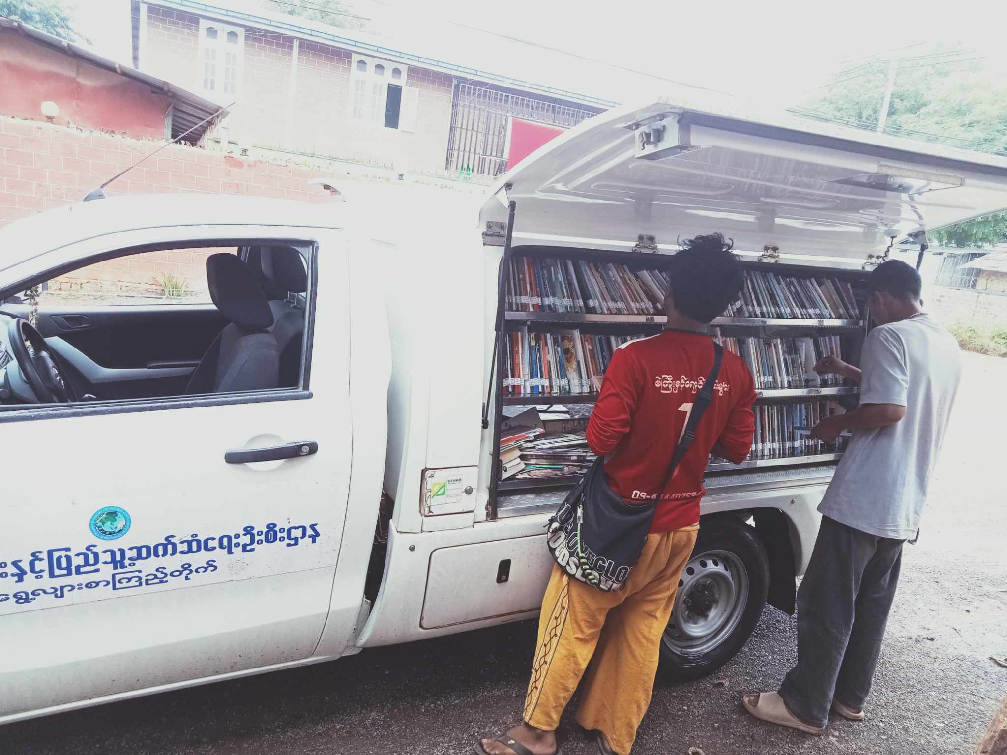 လူထုအခြေပြုဗဟိုဌာန (Community Centre Taunggyi)မှ ရွေ့လျားစာကြည့်တိုက် မော်တော်ယာဉ်ဖြင့် ယနေ့ နံနက်ပိုင်းက ရပ်ကွက်(၄) အေးသာယာသို့ စာအုပ်စာစောင်များ ငှါးရမ်းပေးမှု မှတ်တမ်း။
