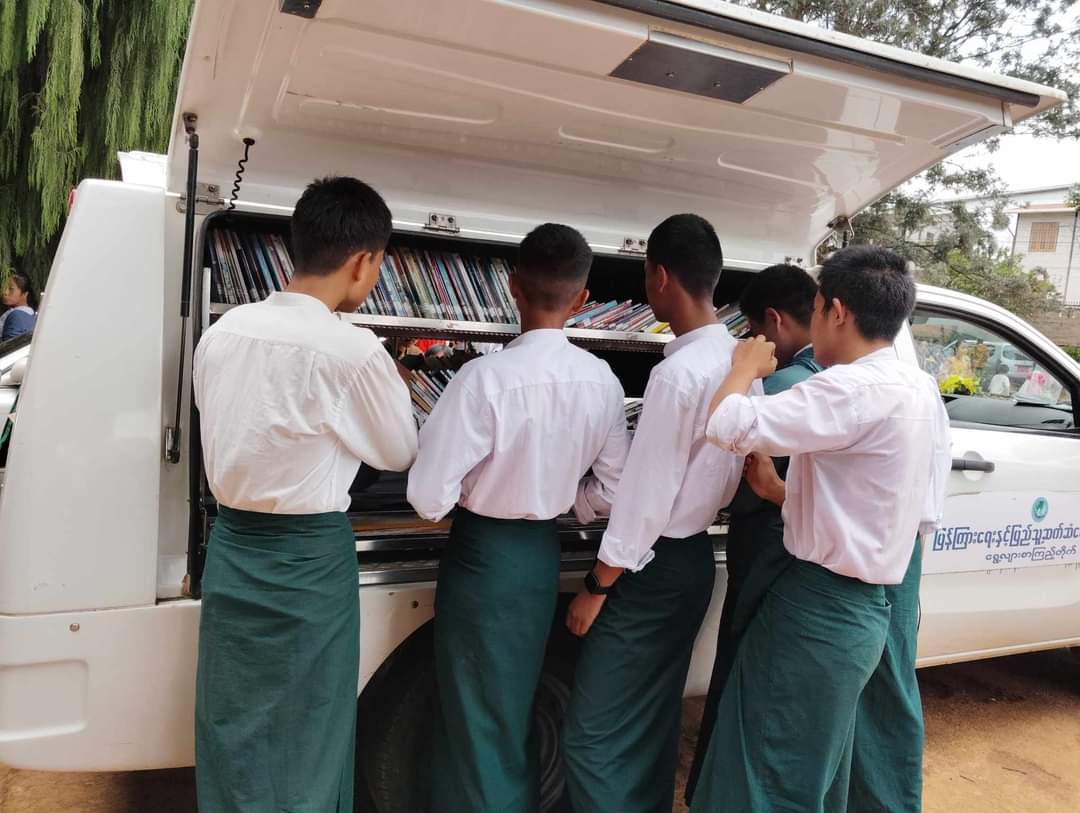 လူထုအခြေပြုဗဟိုဌာန (Community Centre Taunggyi)မှ ရွေ့လျားစာကြည့်တိုက် မော်တော်ယာဉ်ဖြင့် ယနေ့ နံနက်ပိုင်းက အထက(ထီသိမ်)ကျောင်းတွင်စာအုပ်စာစောင်များ ငှါးရမ်းပေးမှု မှတ်တမ်း။