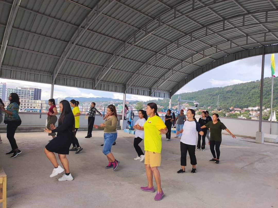 လူထုအခြေပြုဗဟိုဌာန (Community Centre Taunggyi)ရှိ အားကစားခန်းမ၌ နည်းပြဆရာမပိုးသီရိခင် အဖွဲ့၏ Zumba Dances သင်တန်းလှုပ်ရှားမှုပုံရိပ်များ..