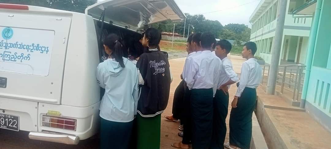 လူထုအခြေပြုဗဟိုဌာန (Community Centre Taunggyi)မှ ရွေ့လျားစာကြည့်တိုက် မော်တော်ယာဉ်ဖြင့် ယနေ့ နံနက်ပိုင်းက အထက(စိုက်မွေး)ကျောင်းတွင်စာအုပ်စာစောင်များ ငှါးရမ်းပေးမှု မှတ်တမ်း။
