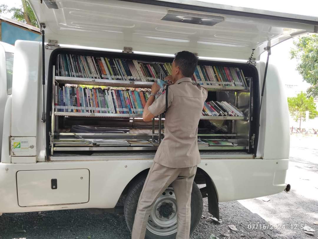 လူထုအခြေပြုဗဟိုဌာန (Community Centre Taunggyi)မှ ရွေ့လျားစာကြည့်တိုက် မော်တော်ယာဉ်ဖြင့် ယနေ့ နံနက်ပိုင်းက တောင်လေးလုံးအကျဥ်းဦးစီးဌာနတွင်စာအုပ်စာစောင်များ ငှါးရမ်းပေးမှု မှတ်တမ်း။