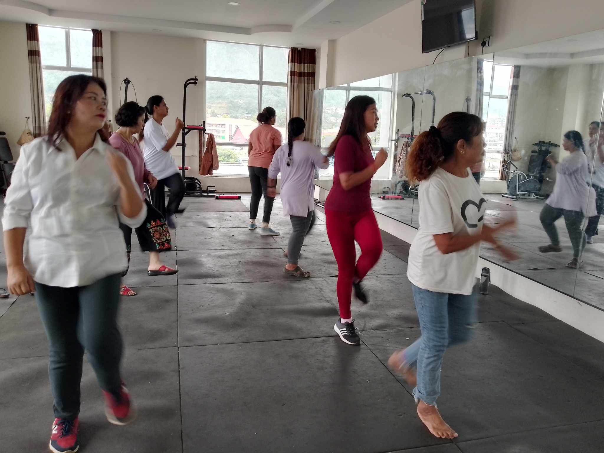 လူထုအခြေပြုဗဟိုဌာန (Community Centre Taunggyi)ရှိ အားကစားခန်းမ၌ ညနေပိုင်းအကအဖွဲ့၏ Zumba Dances သင်တန်းလှုပ်ရှားမှုပုံရိပ်များ.