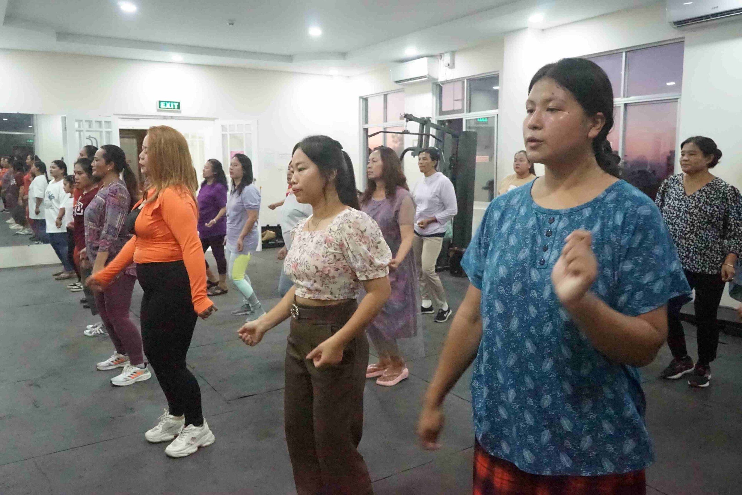 လူထုအခြေပြုဗဟိုဌာန (Community Centre Taunggyi)ရှိ အားကစားခန်းမတွင် ညနေပိုင်းအကအဖွဲ့၏ Zumba Dances သင်တန်း လှုပ်ရှားမှုပုံရိပ်များ