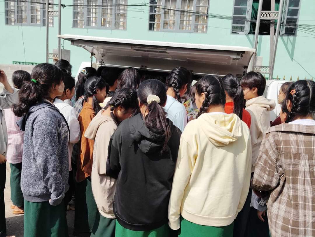 လူထုအခြေပြုဗဟိုဌာန (Community Centre Taunggyi) မှ ရွေ့လျားစာကြည့်တိုက် မော်တော်ယာဉ်ဖြင့် အ.ထ.က ထီသိမ်၊ အ.လ.က (ခွဲ)ဘုရားဖြူမြောက်နှင့် နှင့် အ.ထ.က(ခွဲ)ထီသိမ်ရွေးတောင်ကျောင်းများသို့ စာအုပ်စာစောင်များ ငှါးရမ်းပေးမှု မှတ်တမ်း။