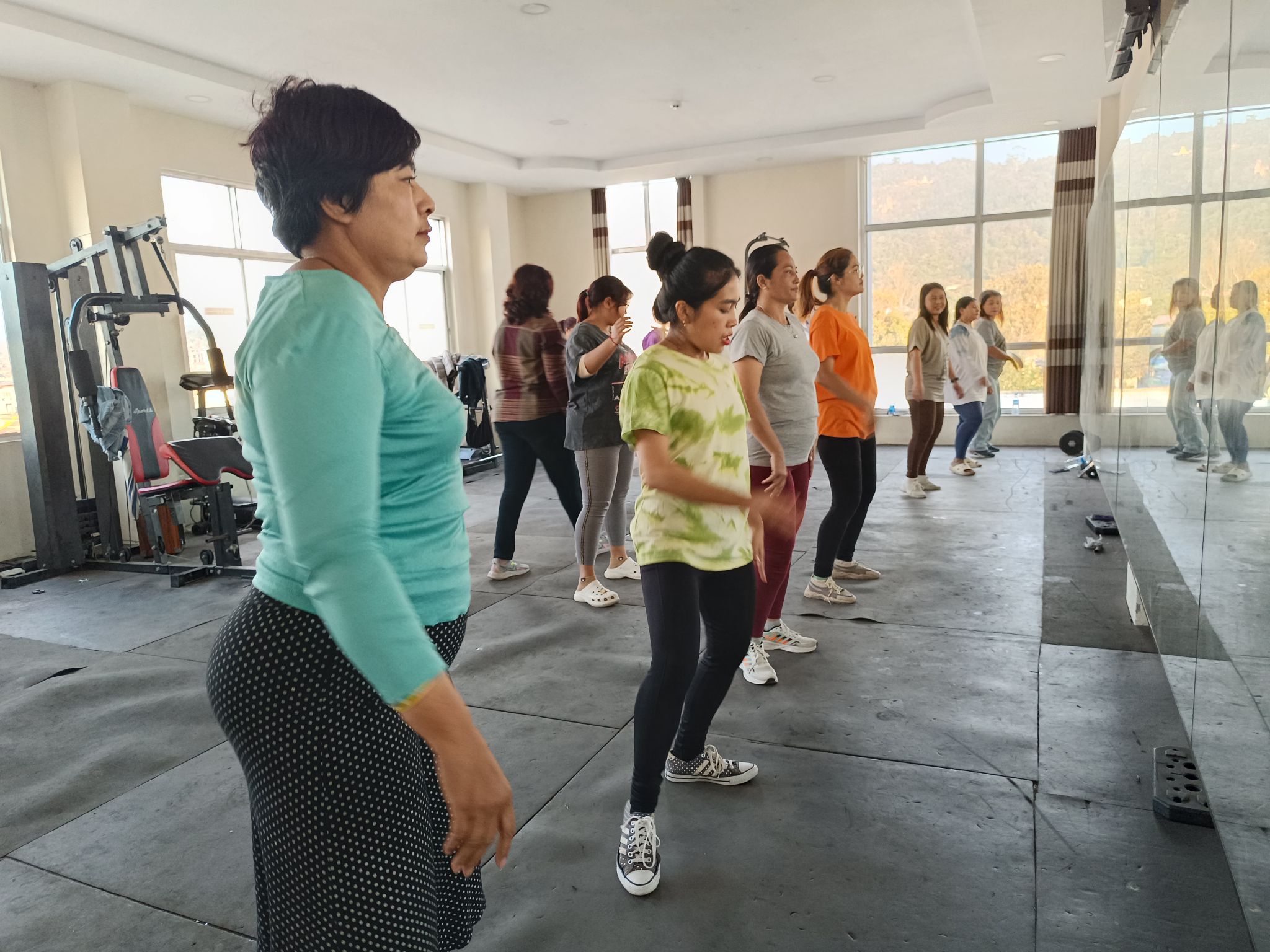 လူထုအခြေပြုဗဟိုဌာန (Community Centre Taunggyi)ရှိ အားကစားခန်းမ၌ ညနေပိုင်းအကအဖွဲ့ ဆရာမ ပိုးသီရိခင်ရဲ့ Zumba Dances သင်တန်းလှုပ်ရှားမှုပုံရိပ်များ.
