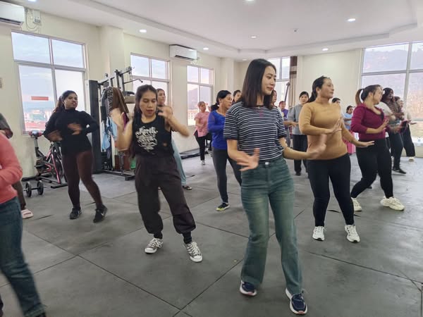 လူထုအခြေပြုဗဟိုဌာန (Community Centre Taunggyi)ရှိ အားကစားခန်းမ၌ မနက်ပိုင်းအကအဖွဲ့ဆရာမ ဟန်သီကို ရဲ့ Zumba Dances သင်တန်းလှုပ်ရှားမှုပုံရိပ်များ.