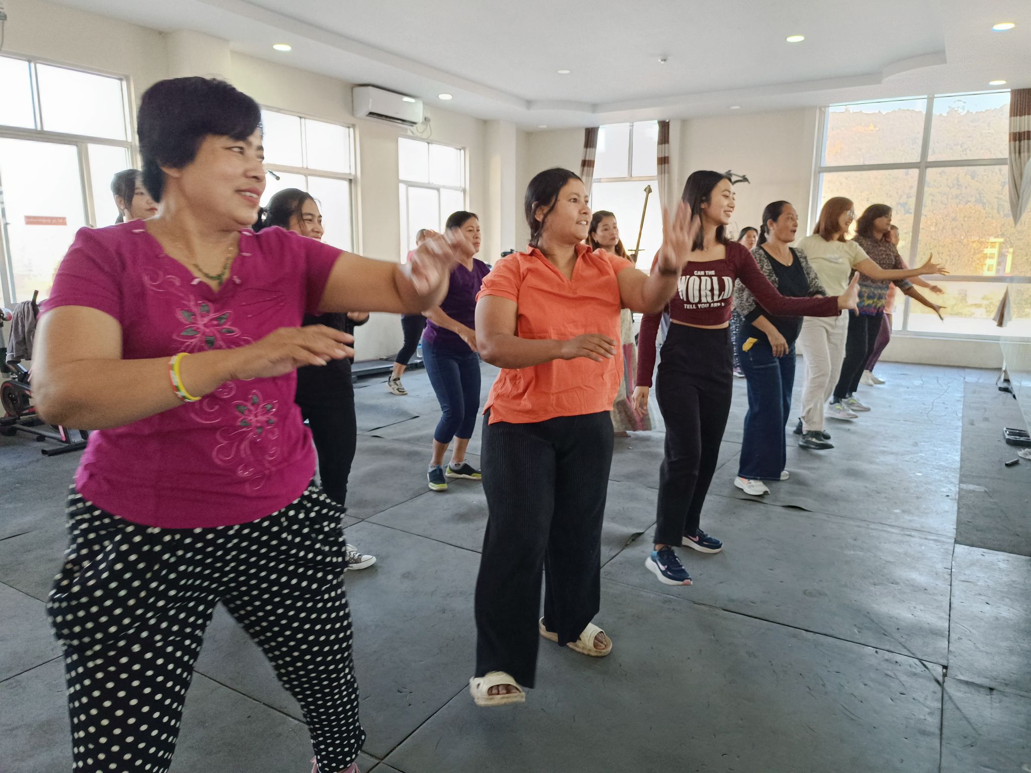 လူထုအခြေပြုဗဟိုဌာန (Community Centre Taunggyi)ရှိ အားကစားခန်းမ၌ ညနေပိုင်းအကအဖွဲ့ ဆရာမ ပိုးသီရိခင်ရဲ့ Zumba Dances သင်တန်းလှုပ်ရှားမှုပုံရိပ်များ.