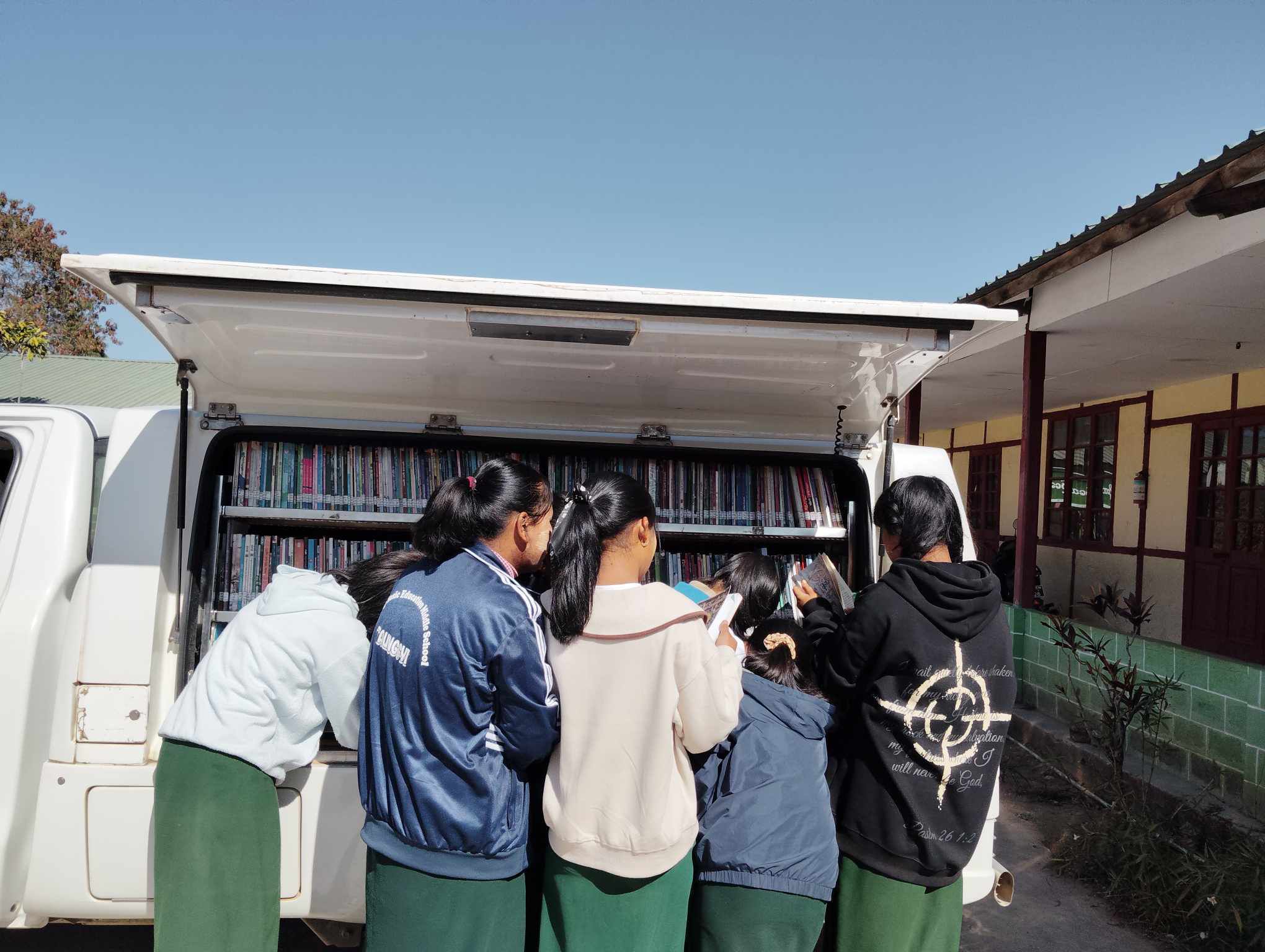 ရွေ့လျားစာကြည့်တိုက်မော်တော်ယာဉ်ဖြင့် စာအုပ်စာစောင်များ ငှါးရမ်း