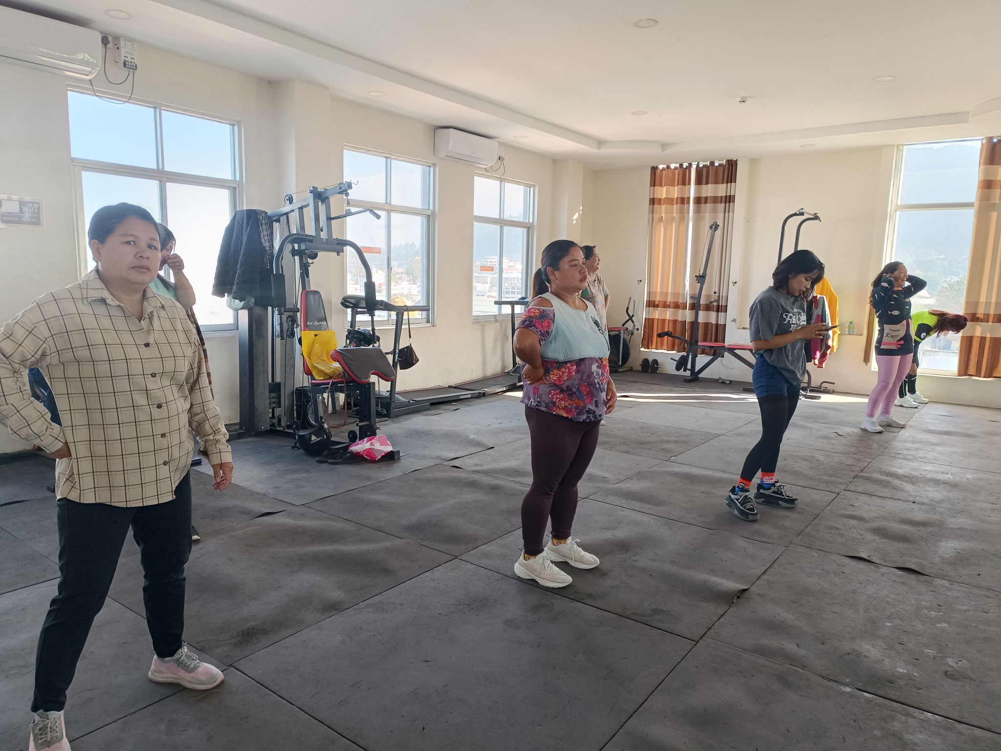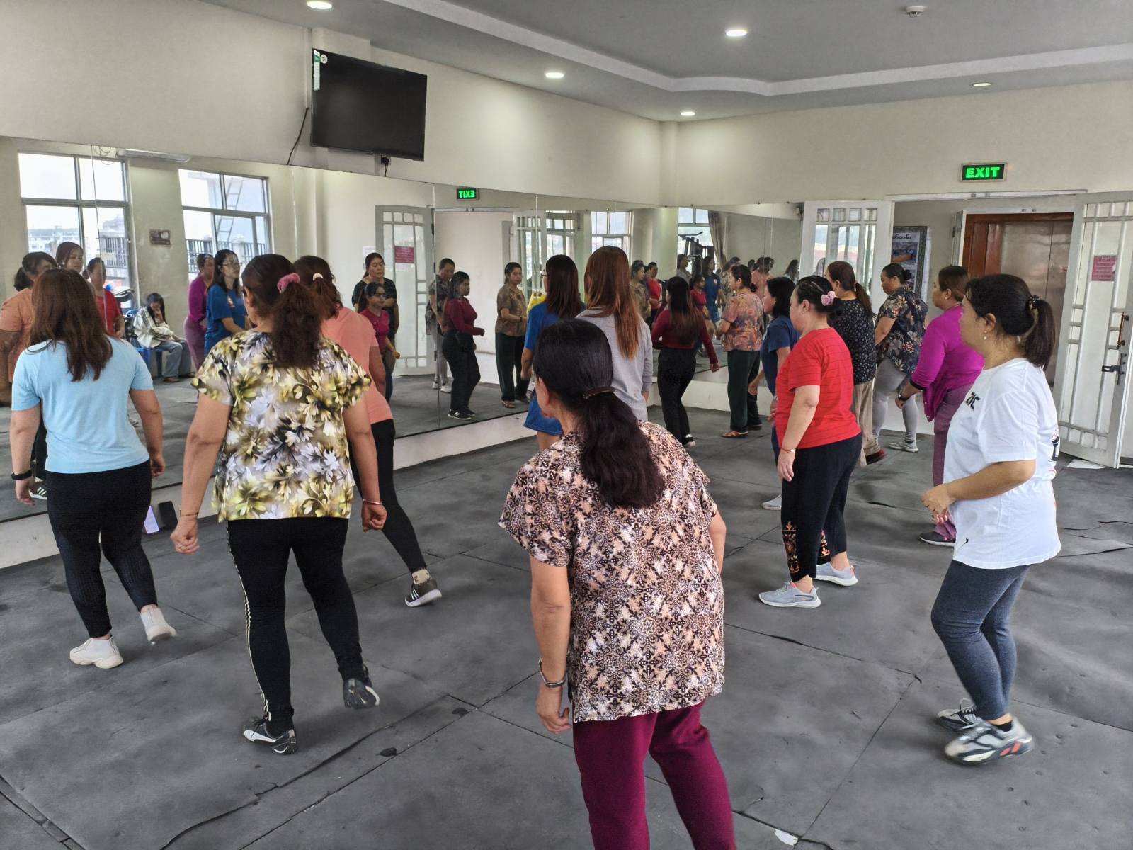 လူထုအခြေပြုဗဟိုဌာန (Community Centre Taunggyi)ရှိ အားကစားခန်းမ၌ မနက်ပိုင်းအကအဖွဲ့ဆရာမ ဟန်သီကို ရဲ့ Zumba Dances သင်တန်းလှုပ်ရှားမှုပုံရိပ်များ.