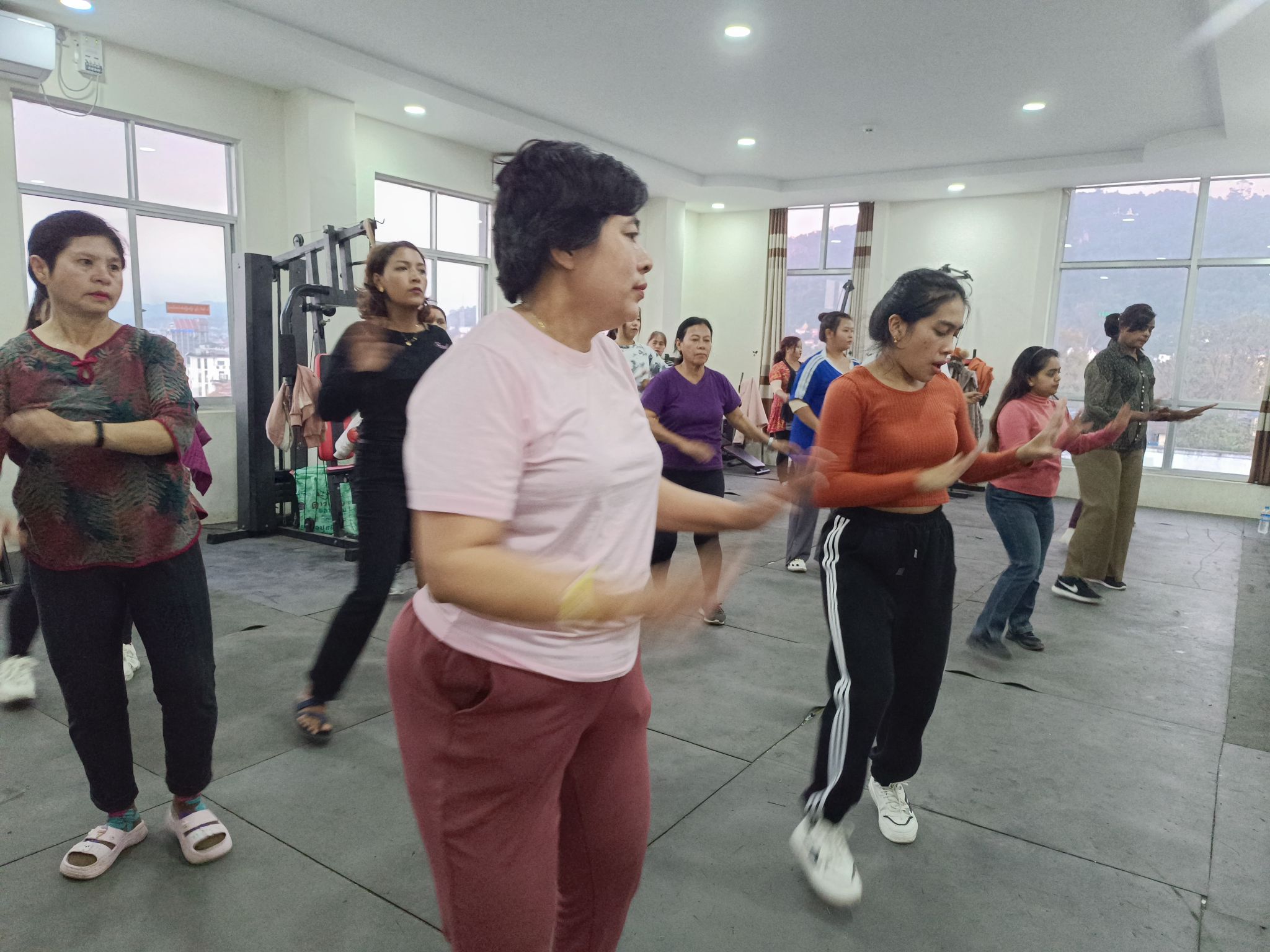 လူထုအခြေပြုဗဟိုဌာန (Community Centre Taunggyi)ရှိ အားကစားခန်းမ၌ ညနေပိုင်းအကအဖွဲ့ ဆရာမ ပိုးသီရိခင်ရဲ့ Zumba Dances သင်တန်းလှုပ်ရှားမှုပုံရိပ်များ.