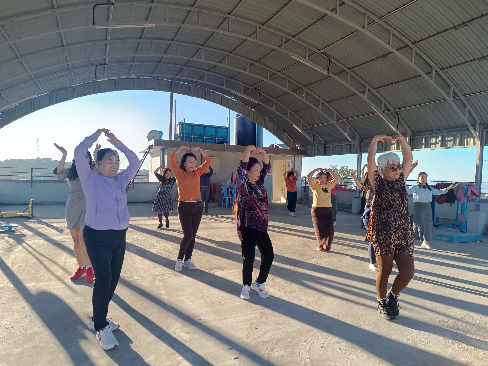 လူထုအခြေပြုဗဟိုဌာန (Community Centre Taunggyi)ရှိ အားကစားခန်းမ၌ ညနေပိုင်းအကအဖွဲ့ ဆရာ ဇေယျာလင်းရဲ့ Zumba Dances သင်တန်းလှုပ်ရှားမှုပုံရိပ်များ.