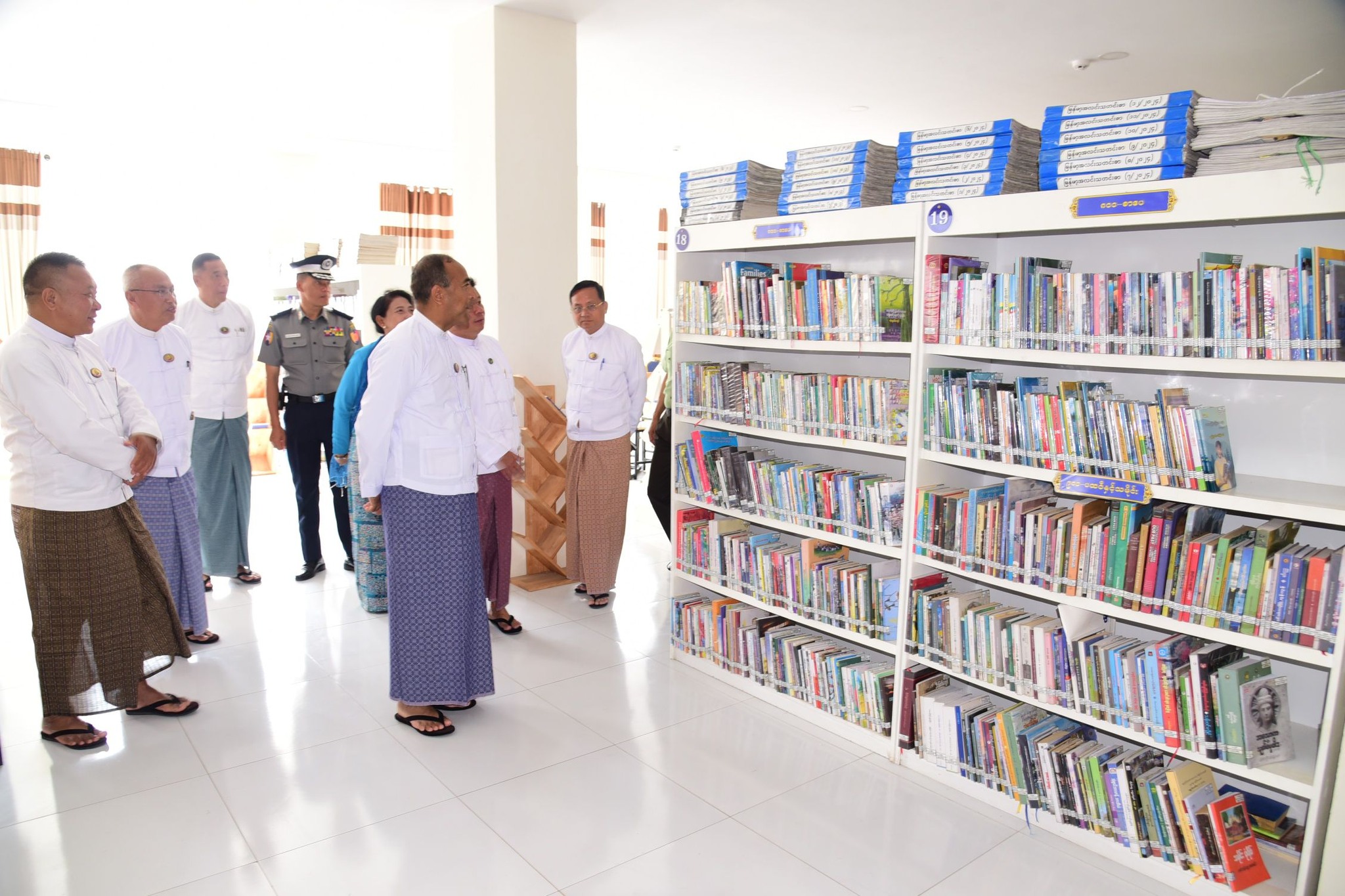 ဆက်လက်၍ သင်တန်းသား၊ သင်တန်းသူများကိုယ်စား သင်တန်းသားတစ်ဦးက ကျေးဇူးတင်စကားပြန်လည်ပြောကြားသည်။ ၎င်းနောက်ပြည်နယ်ဝန်ကြီးချုပ်နှင့်အဖွဲ့သည် လူထု အခြေပြုဗဟိုဌာန(Community Centre) ရှိ ပြည်သူ့စာကြည့်တိုက်လုပ်ငန်းဆောင်ရွက်နေမှု အခြေအနေများအားကြည့်ရှု စစ်ဆေးပြီး ကလေးစာဖတ်ခန်းတွင် ငြိမ်းချမ်းလူငယ်ဖွံ့ဖြိုးရေး ပရဟိတဂေဟာမှ ကလေးများ ဆေးရောင်ခြယ်နေမှုကို ကြည့်ရှုအားပေး၍ ကလေးများအား ဗလာစာအုပ်နှင့် စားစရာမုန့်များဝေငှပေးခဲ့ကြောင်း သိရှိရသည်။