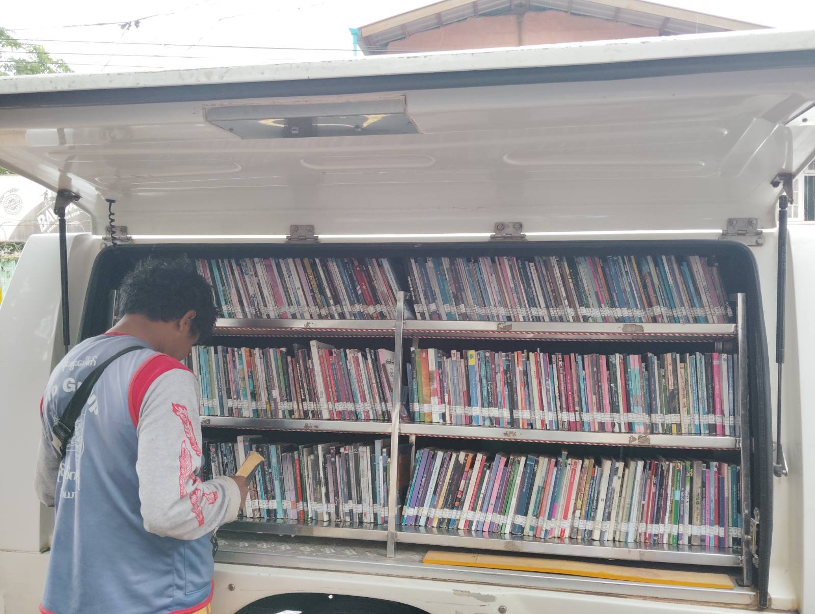 ရွေ့လျားစာကြည့်တိုက်ရွေ့လျားစာကြည့်တိုက်မော်တော်ယာဉ်ဖြင့် စာအုပ်စာစောင်များ ငှါးရမ်းပေး admin9 months ago2 months ago01 mins လူထုအခြေပြုဗဟိုဌာန (Community Centre Taunggyi) မှ ရွေ့လျားစာကြည့်တိုက်မော်တော်ယာဉ်ဖြင့် စာပေလမ်းအေးသာယာသို့ စာအုပ်စာစောင်များ ငှါးရမ်းပေးမှု မှတ်တမ်း။ Post navigation Previous: ကမ္ဘာ့ကလေးအလုပ်သမား ဆန့်ကျင်တိုက်ဖျက်ရေးနေ့ အထိမ်းအမှတ်အသိပညာပေးဟောပြောပွဲNext: ရွေ့လျားစာကြည့်တိုက်မော်တော်ယာဉ်ဖြင့် စာအုပ်စာစောင်များ ငှါးရမ်းပေး