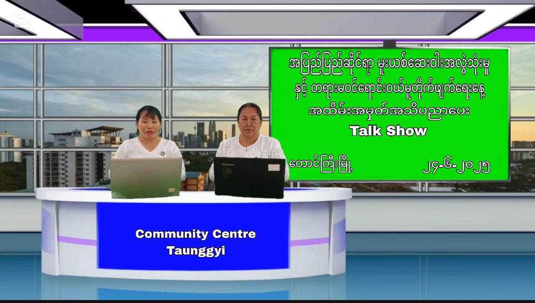 ပြန်ကြားရေးနှင့်ပြည်သူ့ဆက်ဆံရေးဦးစီးဌာန၊ တောင်ကြီးခရိုင်ရုံးမှ “အပြည်ပြည်ဆိုင်ရာမူးယစ်ဆေးဝါးအလွဲသုံးမူနှင့် တရားမဝင်ရောင်းဝယ်မူတိုက်ဖျက်ရေးနေ့အထိမ်းအမှတ်” အသိပညာပေး Talk Show ရိုက်ကူးထုတ်လွှင့်မှုမှတ်တမ်း