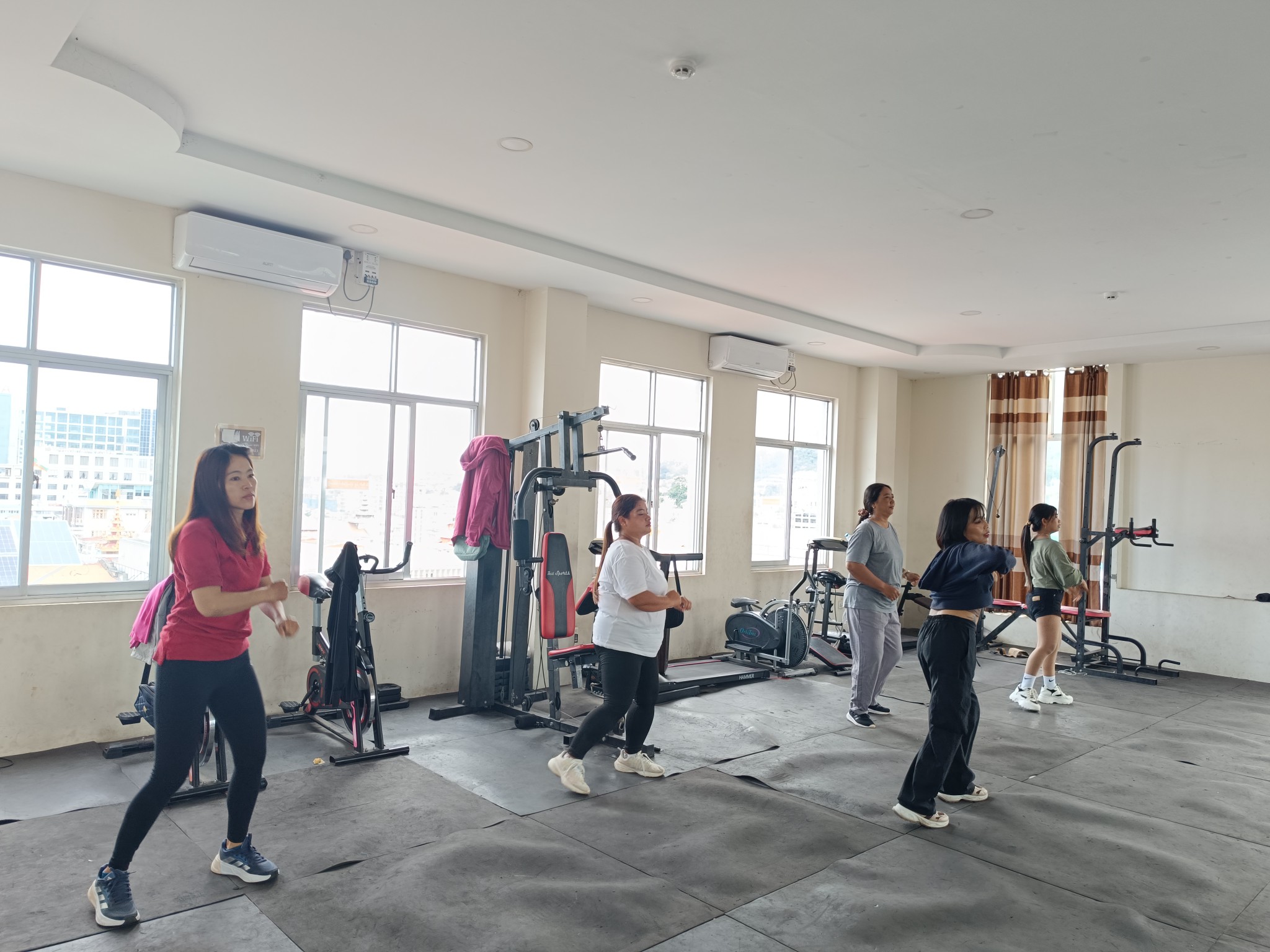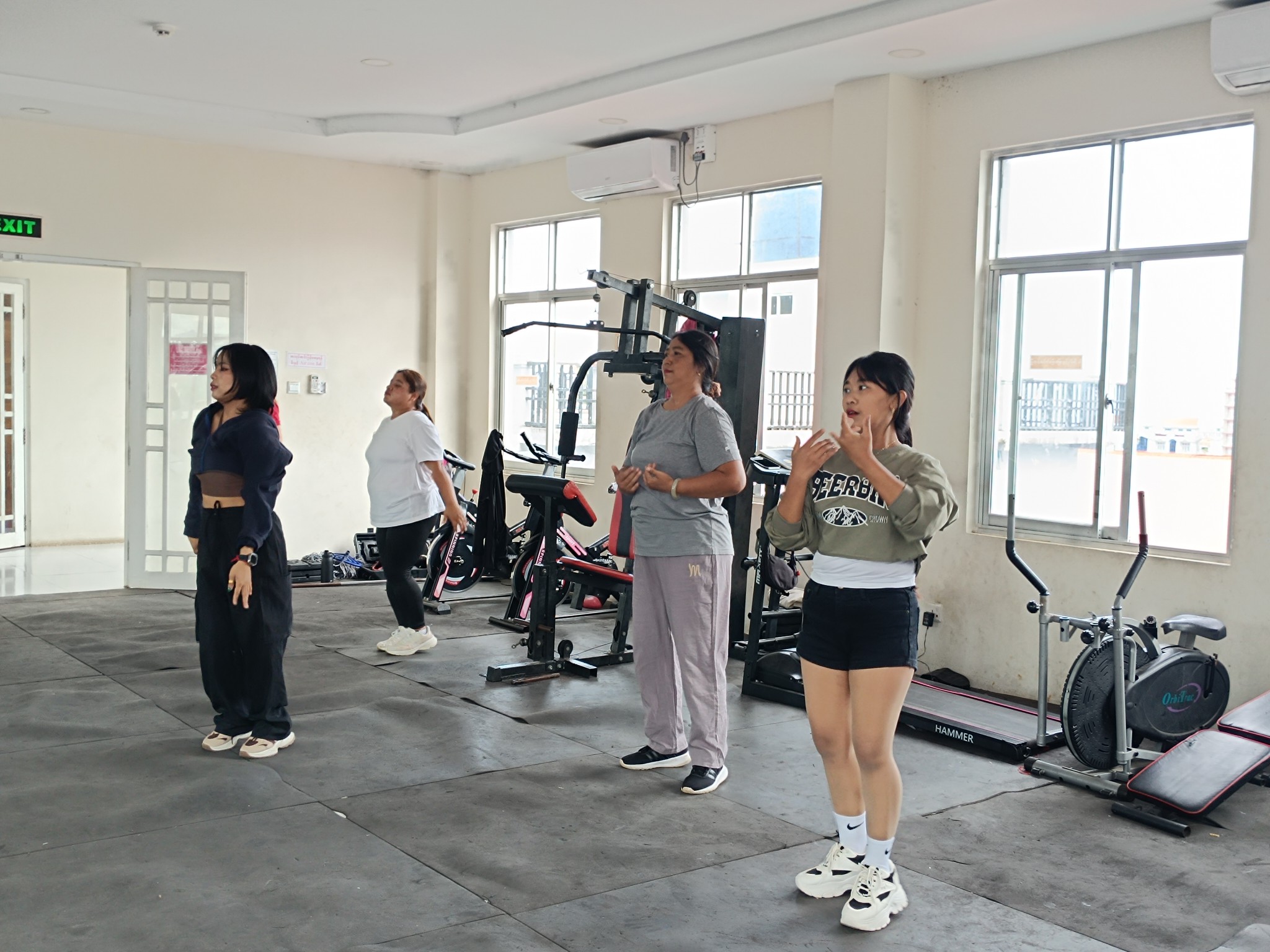 လူထုအခြေပြုဗဟိုဌာန (Community Centre Taunggyi)ရှိ အားကစားခန်းမ၌ မနက်ပိုင်းအကအဖွဲ့ဆရာမ ဟန်သီကို ရဲ့ Zumba Dances သင်တန်းလှုပ်ရှားမှုပုံရိပ်များ.