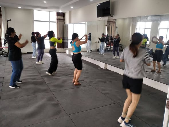 လူထုအခြေပြုဗဟိုဌာန (Community Centre Taunggyi)ရှိ အားကစားခန်းမ၌ မနက်ပိုင်းအကအဖွဲ့ဆရာမ ဟန်သီကို ရဲ့ Zumba Dances သင်တန်းလှုပ်ရှားမှုပုံရိပ်များ.