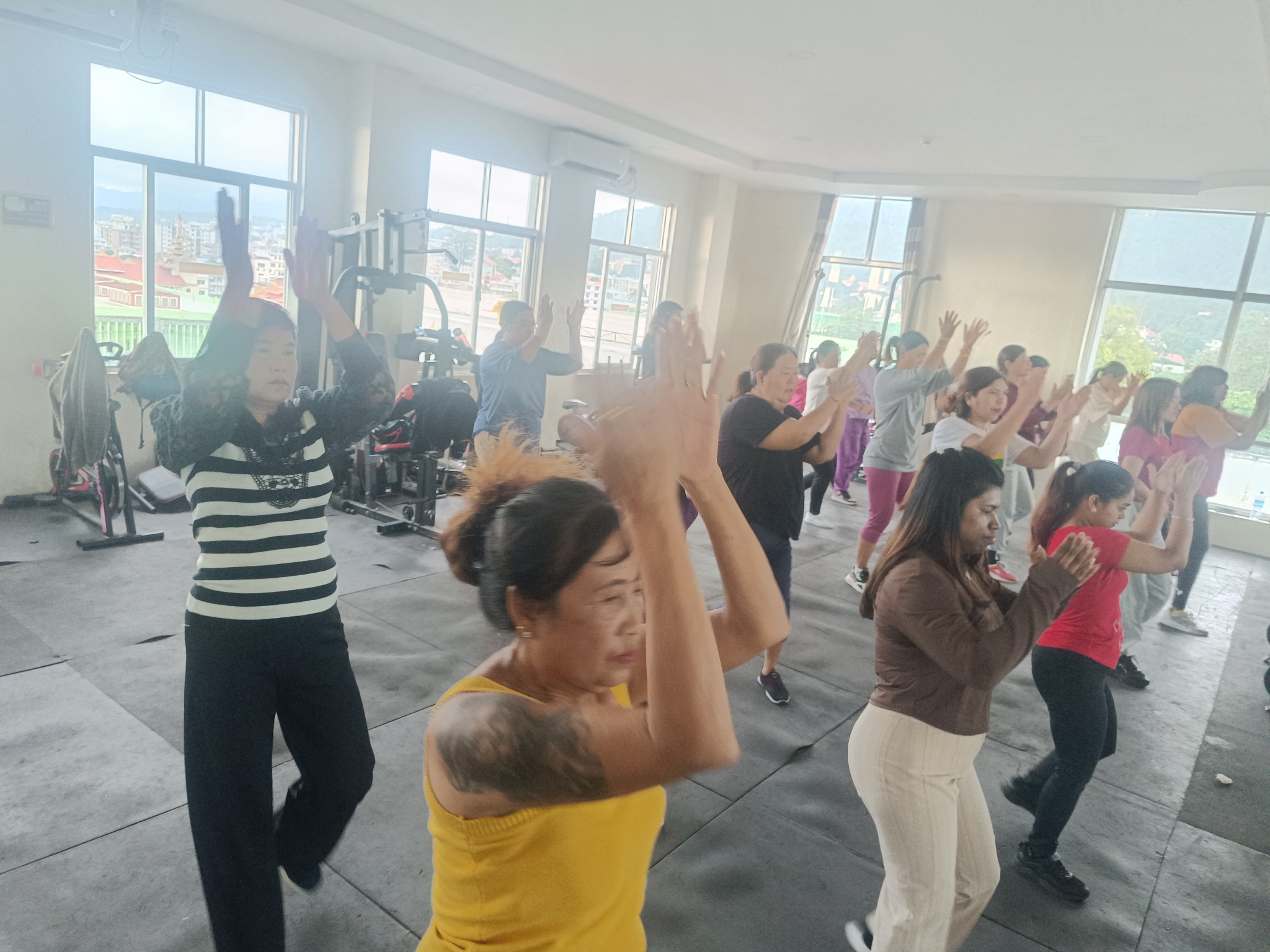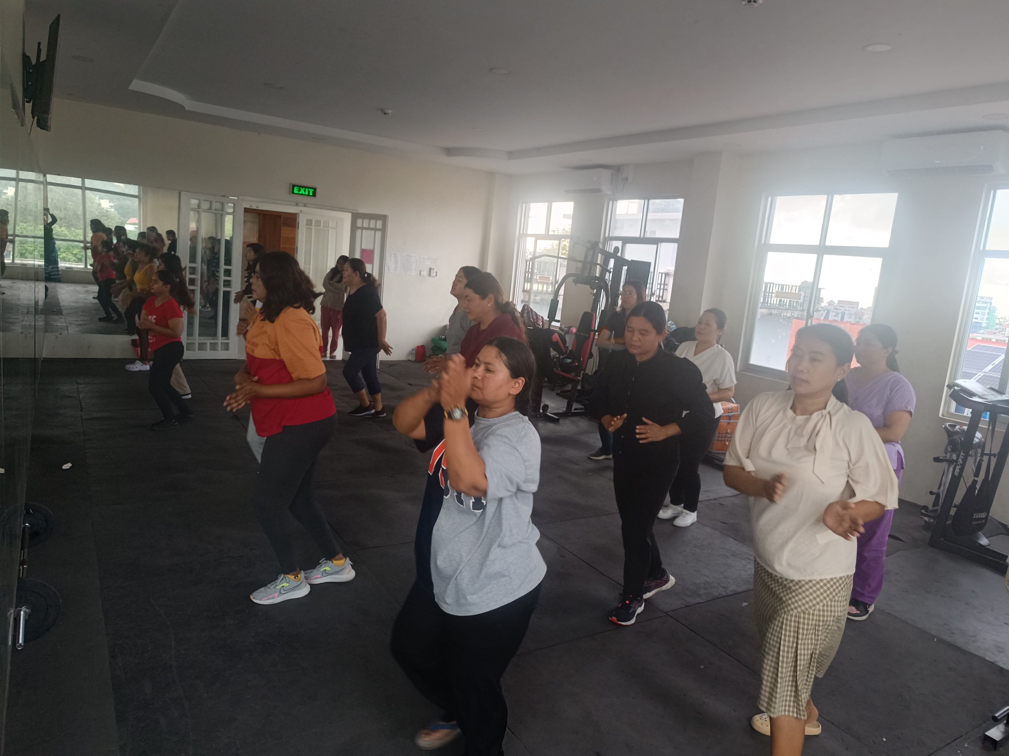 လူထုအခြေပြုဗဟိုဌာန (Community Centre Taunggyi)ရှိ အားကစားခန်းမ၌ ညနေပိုင်းအကအဖွဲ့ ဆရာမ ပိုးသီရိခင်ရဲ့  Zumba Dances သင်တန်းလှုပ်ရှားမှုပုံရိပ်များ.