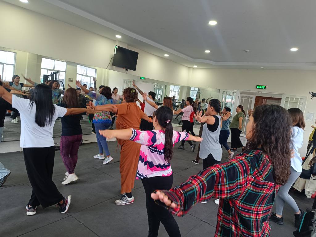 သင်တန်းဖွင့်လှစ်မှုများZumba Dances သင်တန်း admin7 months ago2 months ago01 mins လူထုအခြေပြုဗဟိုဌာန (Community Centre Taunggyi)ရှိ အားကစားခန်းမ၌ ညနေပိုင်းအကအဖွဲ့ ဆရာမ ပိုးသီရိခင်ရဲ့ Zumba Dances သင်တန်းလှုပ်ရှားမှုပုံရိပ်များ. Post navigation Previous: “ဝိုင်းဝန်းကာကွယ် မီးခိုးမြူငွေ့ အန္တရာယ် ” အသိပညာပေး Talk ShowNext: Zumba Dances သင်တန်း