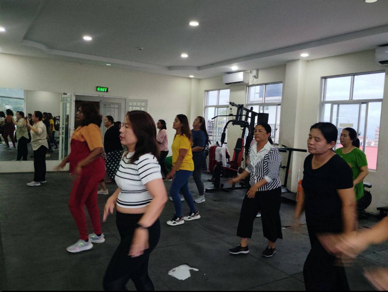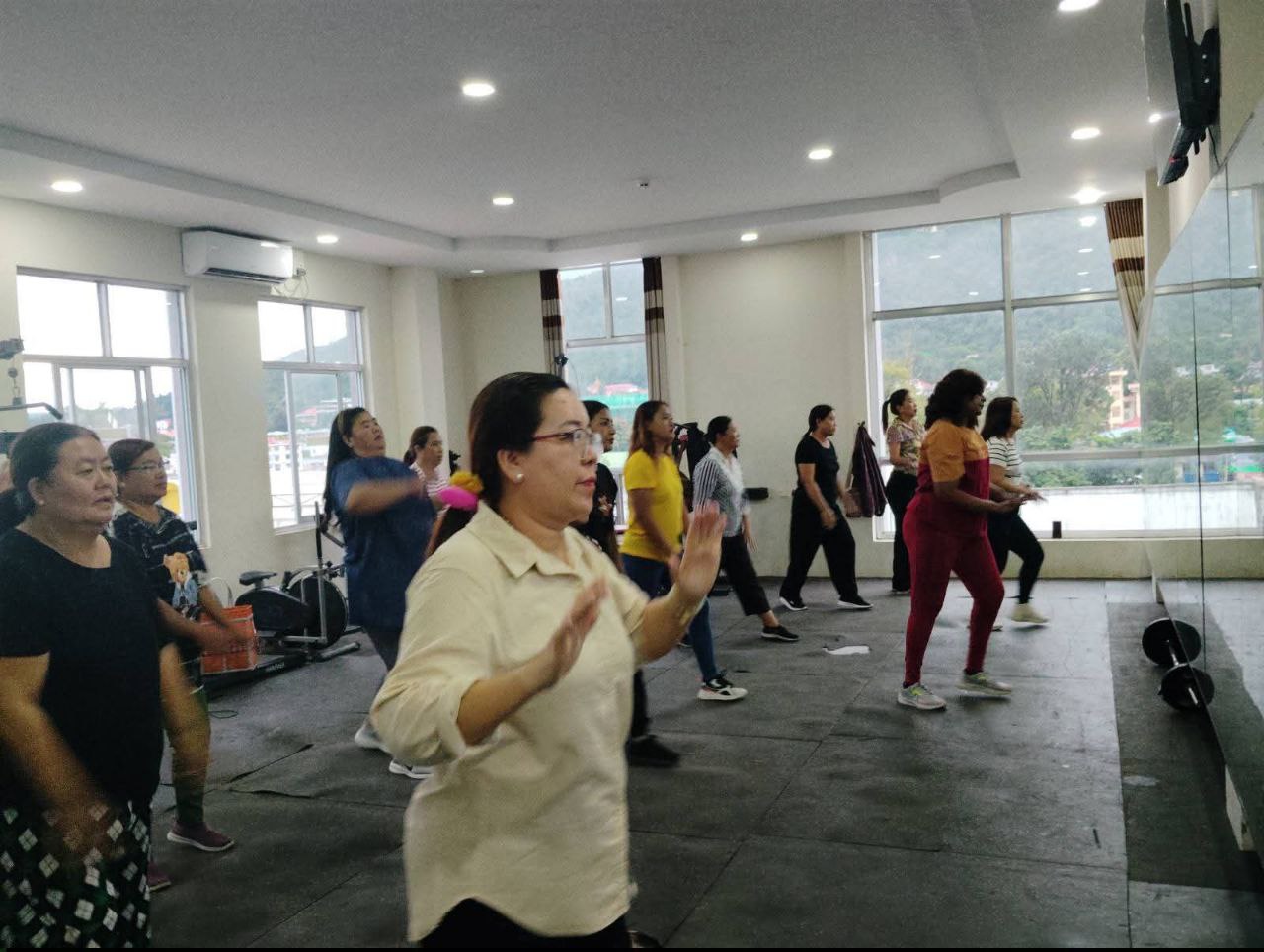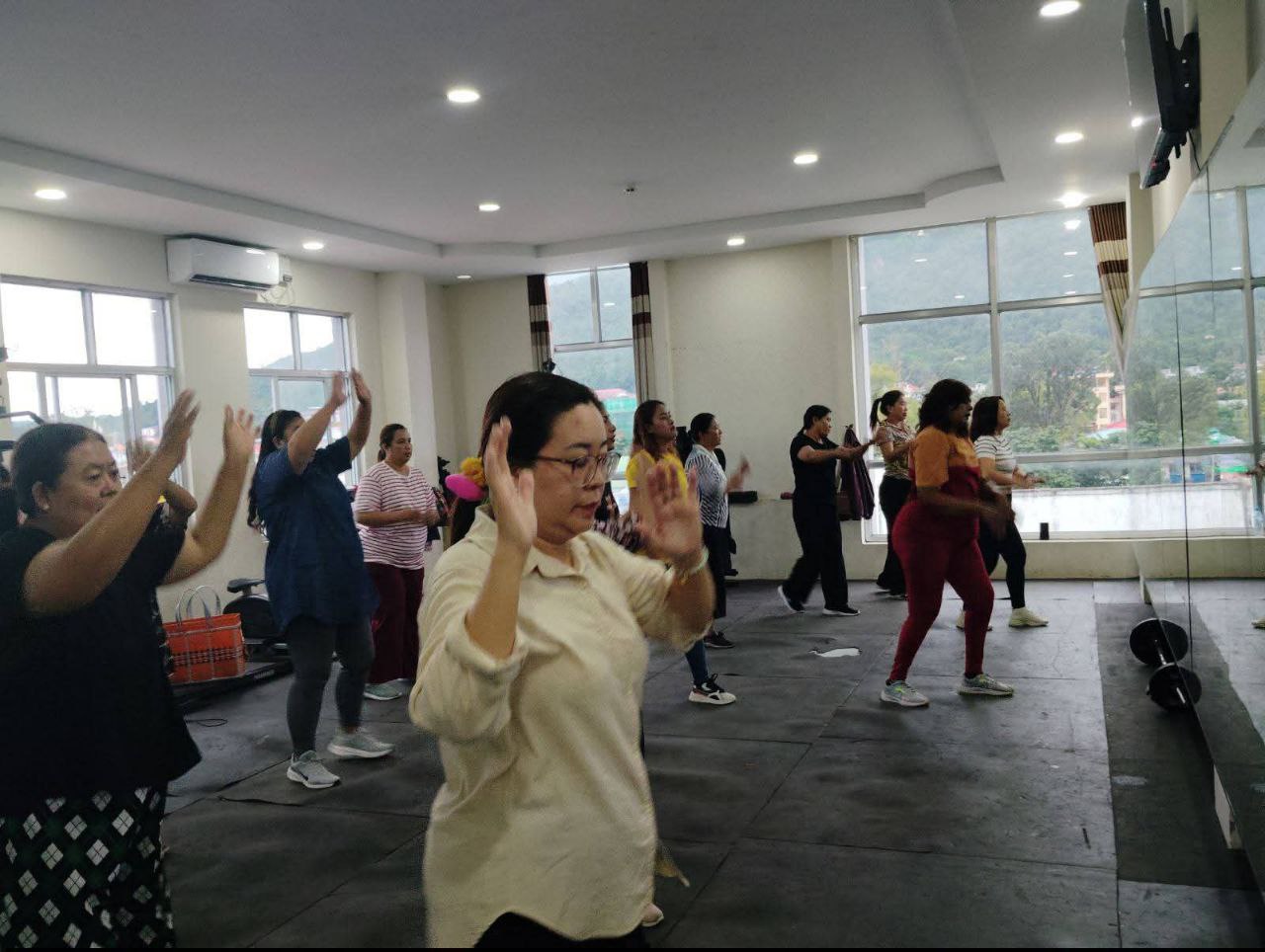 လူထုအခြေပြုဗဟိုဌာန (Community Centre Taunggyi)ရှိ အားကစားခန်းမ၌ ညနေပိုင်းအကအဖွဲ့ ဆရာအောင်အောင်ရဲ့ Zumba Dances သင်တန်း လှုပ်ရှားမှုပုံရိပ်များ.