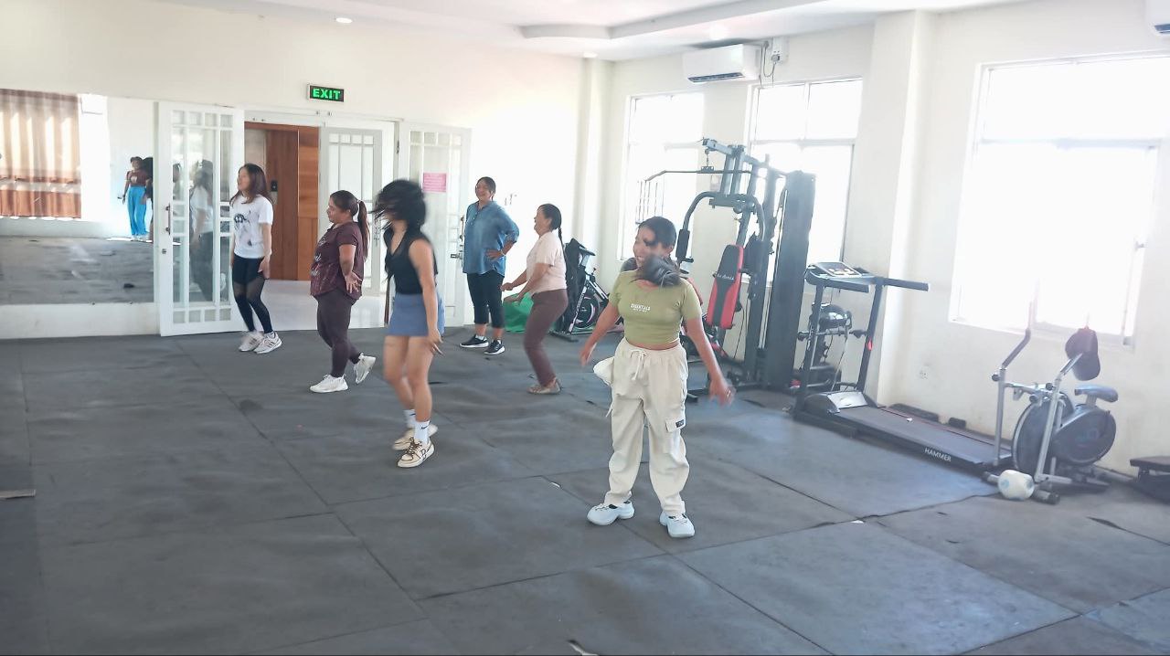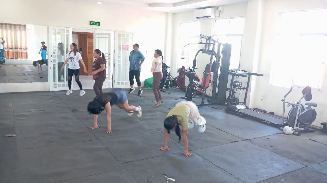 လူထုအခြေပြုဗဟိုဌာန (Community Centre Taunggyi)ရှိ အားကစားခန်းမ၌ မနက်ပိုင်းအကအဖွဲ့ ဆရာမဟန်သီကိုရဲ့ Zumba Dances သင်တန်း လှုပ်ရှားမှုပုံရိပ်များ.
