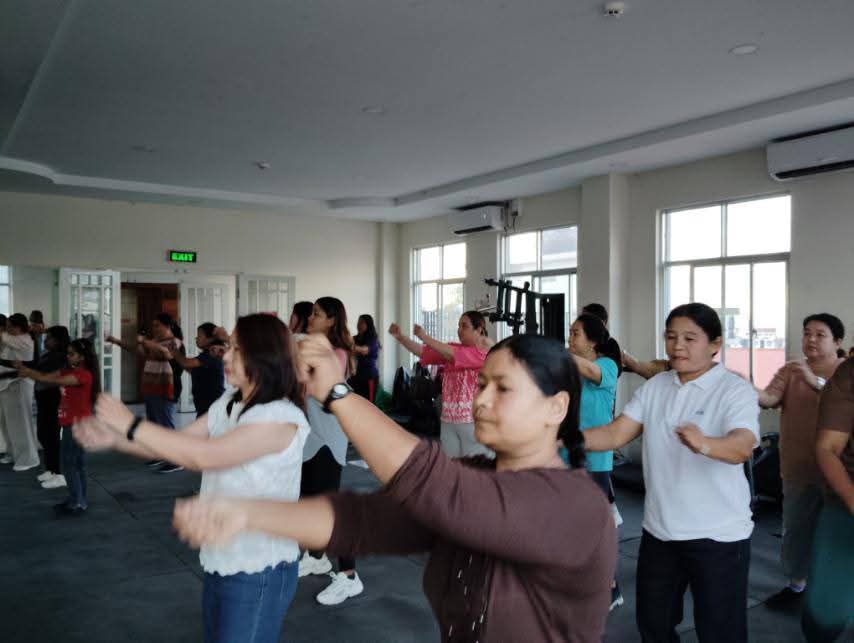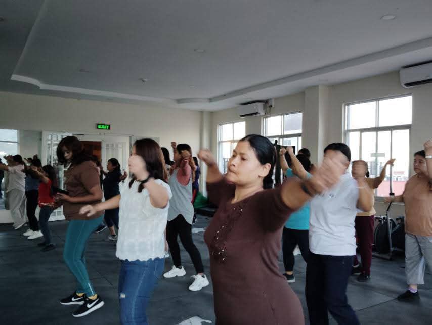 လူထုအခြေပြုဗဟိုဌာန (Community Centre Taunggyi)ရှိ အားကစားခန်းမ၌ ညနေပိုင်း အကအဖွဲ့ ဆရာအောင်အောင်ရဲ့ Zumba Dances သင်တန်း လှုပ်ရှားမှုပုံရိပ်များ.