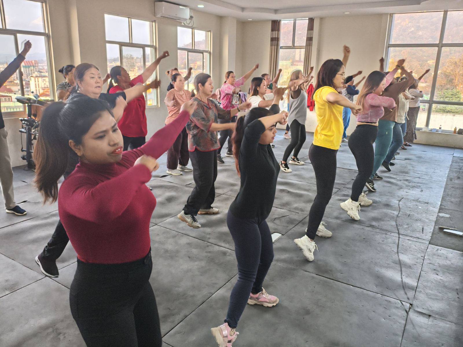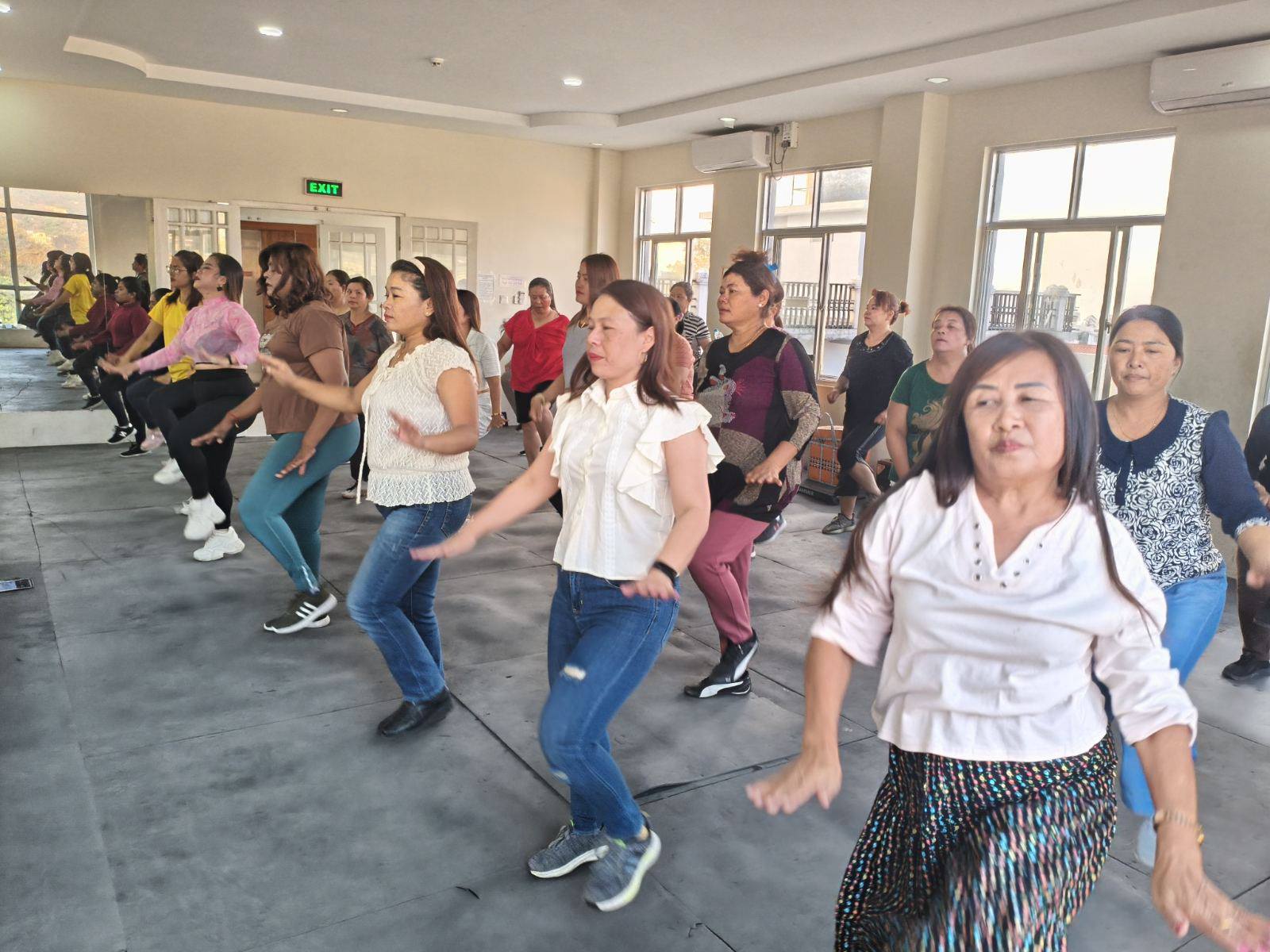 လူထုအခြေပြုဗဟိုဌာန (Community Centre Taunggyi)ရှိ အားကစားခန်းမ၌ ညနေပိုင်းအကအဖွဲ့ ဆရာမ ပိုးသီရိခင်ရဲ့ Zumba Dances သင်တန်းလှုပ်ရှားမှုပုံရိပ်များ.