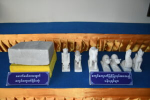 မောက်မယ်ဒေသထွက်စကျင်ကျောက်ရိုင်းတုံး ၊ စကျင်ကျောက်ဖြင့်ပြုလုပ်ထားသည့် ပန်းပုရုပ်များ