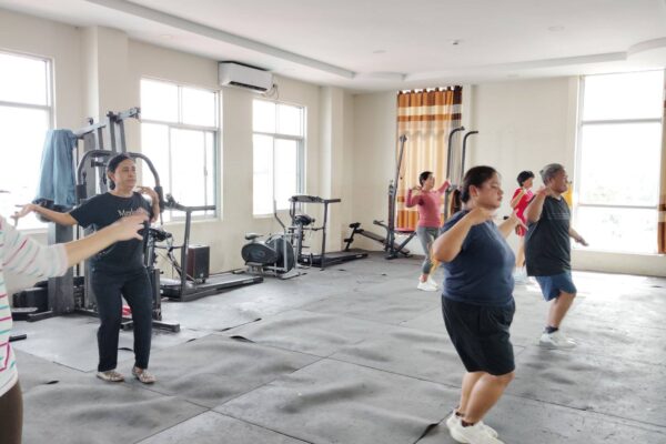 လူထုအခြေပြုဗဟိုဌာန (Community Centre Taunggyi)ရှိ အားကစားခန်းမ၌ မနက်ပိုင်းအကအဖွဲ့ ဆရာမဟန်သီကို ရဲ့ Zumba Dances သင်တန်းလှုပ်ရှားမှုပုံရိပ်များ.