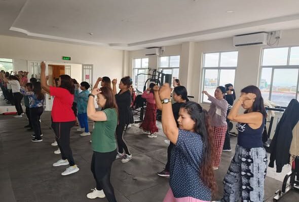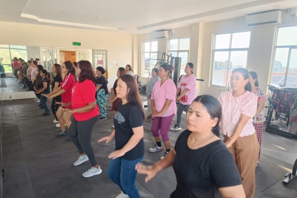 လူထုအခြေပြုဗဟိုဌာန (Community Centre Taunggyi)ရှိ အားကစားခန်းမ၌ မနက်ပိုင်းအကအဖွဲ့ဆရာမ ဟန်သီကို ရဲ့ Zumba Dances သင်တန်းလှုပ်ရှားမှုပုံရိပ်များ