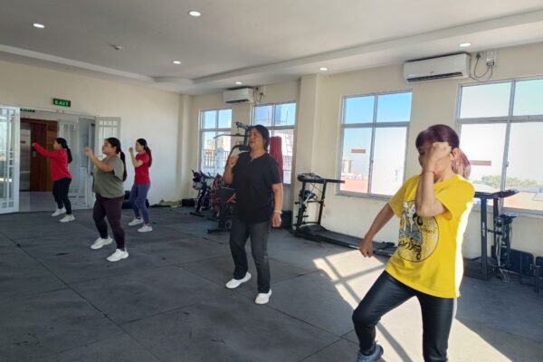 လူထုအခြေပြုဗဟိုဌာန (Community Centre Taunggyi)ရှိ အားကစားခန်းမ၌ မနက်ပိုင်းအကအဖွဲ့ဆရာမ ဟန်သီကို ရဲ့ Zumba Dances သင်တန်းလှုပ်ရှားမှုပုံရိပ်များ.