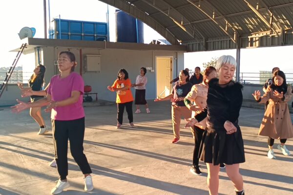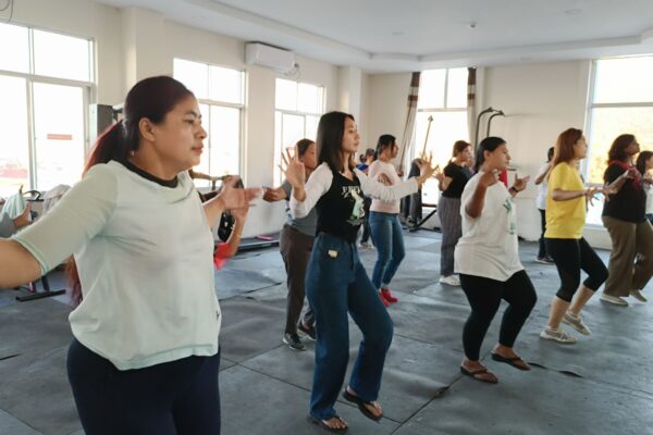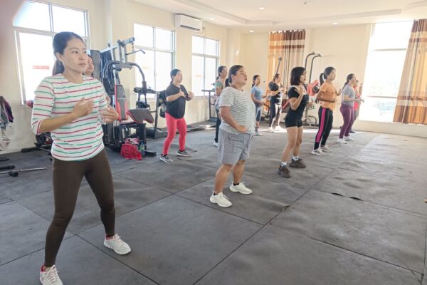 လူထုအခြေပြုဗဟိုဌာန (Community Centre Taunggyi)ရှိ အားကစားခန်းမ၌ မနက်ပိုင်းအကအဖွဲ့ဆရာမ ဟန်သီကို ရဲ့ Zumba Dances သင်တန်းလှုပ်ရှားမှုပုံရိပ်များ.