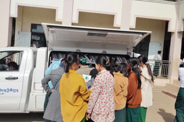လူထုအခြေပြုဗဟိုဌာန (Community Centre Taunggyi) မှ ရွေ့လျားစာကြည့်တိုက် မော်တော်ယာဉ်ဖြင့် ရပ်ကွက် (၄)အေးသာယာသို့ စာအုပ်စာစောင်များ ငှါးရမ်းပေးမှု မှတ်တမ်း။