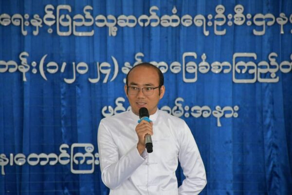 လူထုအခြေပြုဗဟိုဌာန(Community Centre)၌ ဖွင့်လှစ်သည့် အခမ်းအနားမှူးသင်တန်း(၁/၂၀၂၄) ပထမရက်တွင် သင်တန်းနည်းပြဆရာ တောင်ကြီးတက္ကသိုလ် ဒုတိယပါမောက္ခချုပ် ဒေါက်တာအောင်နေမျိုးမှ သင်ခန်းစာများအား ပို့ချသင်ကြားပေးနေစဥ် မှတ်တမ်း တောင်ကြီး မေ – ၂၇