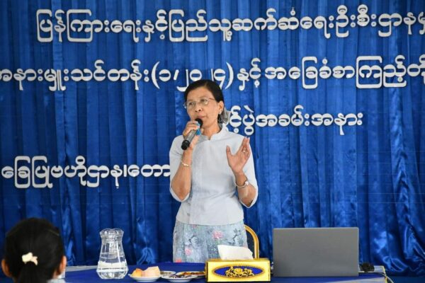 လူထုအခြေပြုဗဟိုဌာန(Community Centre)၌ ဖွင့်လှစ်သည့် အခြေခံစာကြည့်တိုက်ပညာ သင်တန်း(၁/၂၀၂၄) တတိယရက်တွင် ပြန်ကြားရေးနှင့်ပြည်သူ့ဆက်ဆံရေးဦးစီးဌာနမှ ဒုတိယညွှန်ကြားရေးမှူး ဒေါ်နန်းသန္တာဦးက သင်ခန်းစာများရှင်းလင်းဆွေးနွေးပို့ချ