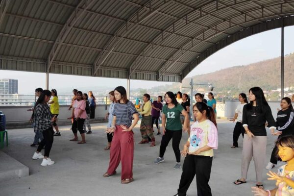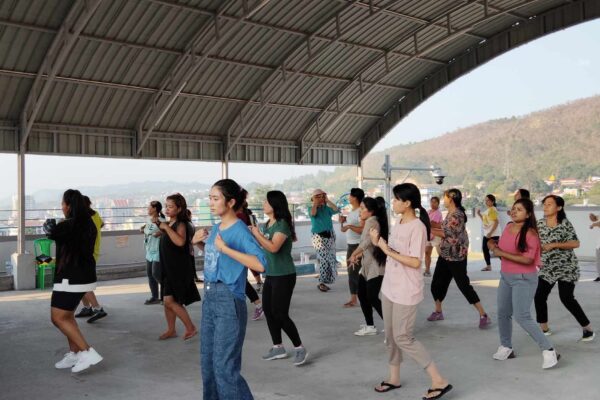 လူထုအခြေပြုဗဟိုဌာန (Community Centre Taunggyi)ရှိ ဟင်းလင်းပြင်လေ့ကျင့်ရေးအားကစားခန်းမတွင် Zumba Dances သင်တန်းသူများ၏ လှုပ်ရှားမှုပုံရိပ်များ။