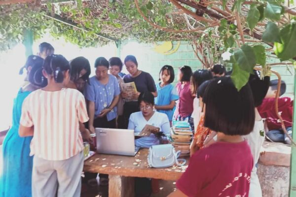 လူထုအခြေပြုဗဟိုဌာန (Community Centre Taunggyi)မှ ရွေ့လျားစာကြည့်တိုက် မော်တော်ယာဉ်ဖြင့် ယနေ့ နံနက်ပိုင်းက ရက်ကန်းသင်တန်းကျောင်းသို့ စာအုပ်စာစောင်များ ငှါးရမ်းပေးမှု မှတ်တမ်း။