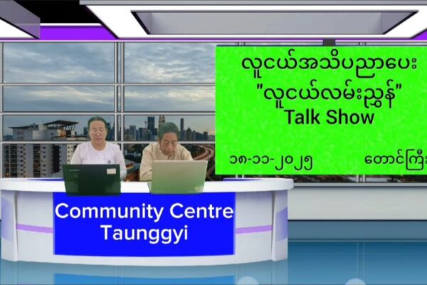 ပြန်ကြားရေးနှင့်ပြည်သူ့ဆက်ဆံရေးဦးစီးဌာန၊ လူထုအခြေပြုဗဟိုဌာန(Community center)တောင်ကြီးတွင် စာရေးဆရာ ဗေဒသုတေသီဆရာမျိုးနှင့် ပူးပေါင်း၍ လူငယ်အသိပညာပေး”လူငယ်လမ်းညွှန်” Talk Show ဆောင်ရွက်မှုမှတ်တမ်း