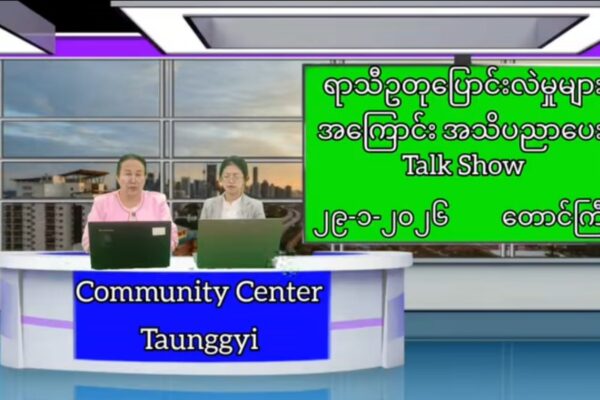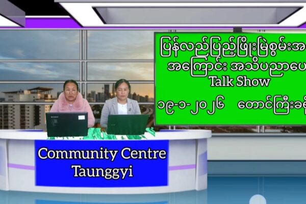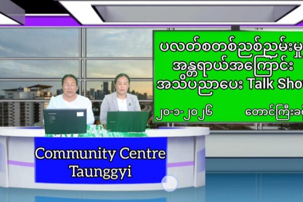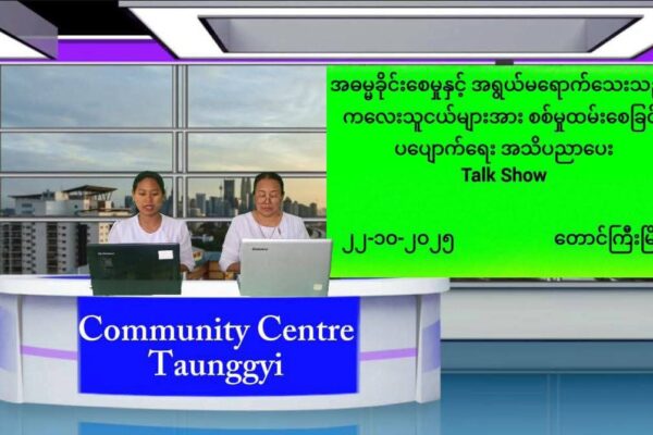 ပြန်ကြားရေးနှင့်ပြည်သူ့ဆက်ဆံရေးဦးစီးဌာန၊ လူထုအခြေပြုဗဟိုဌာန(Community center)တောင်ကြီးတွင် ပတ်ဝန်းကျင်ထိန်းသိမ်းရေးဦးစီးဌာနနှင့်ပူးပေါင်း၍ ရာသီဥတုပြောင်းလဲမူများအကြောင်းအသိပညာပေး Talk Show ဆောင်ရွက်မှုမှတ်တမ်း
